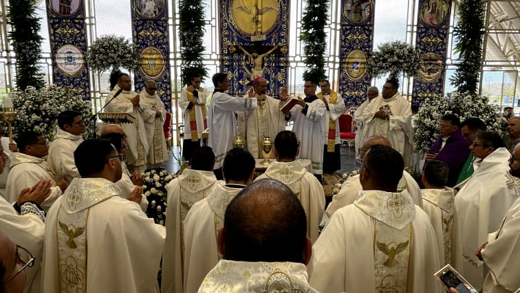 Una multitud de fieles católicos de la Diócesis de Barcelona, participó de la Santa Misa Crismal este Martes Santo, en el complejo deportivo «Jesús Yendis», de la ciudad de Barcelona, celebrada por monseñor Jorge Anibal Quintero Chacón.